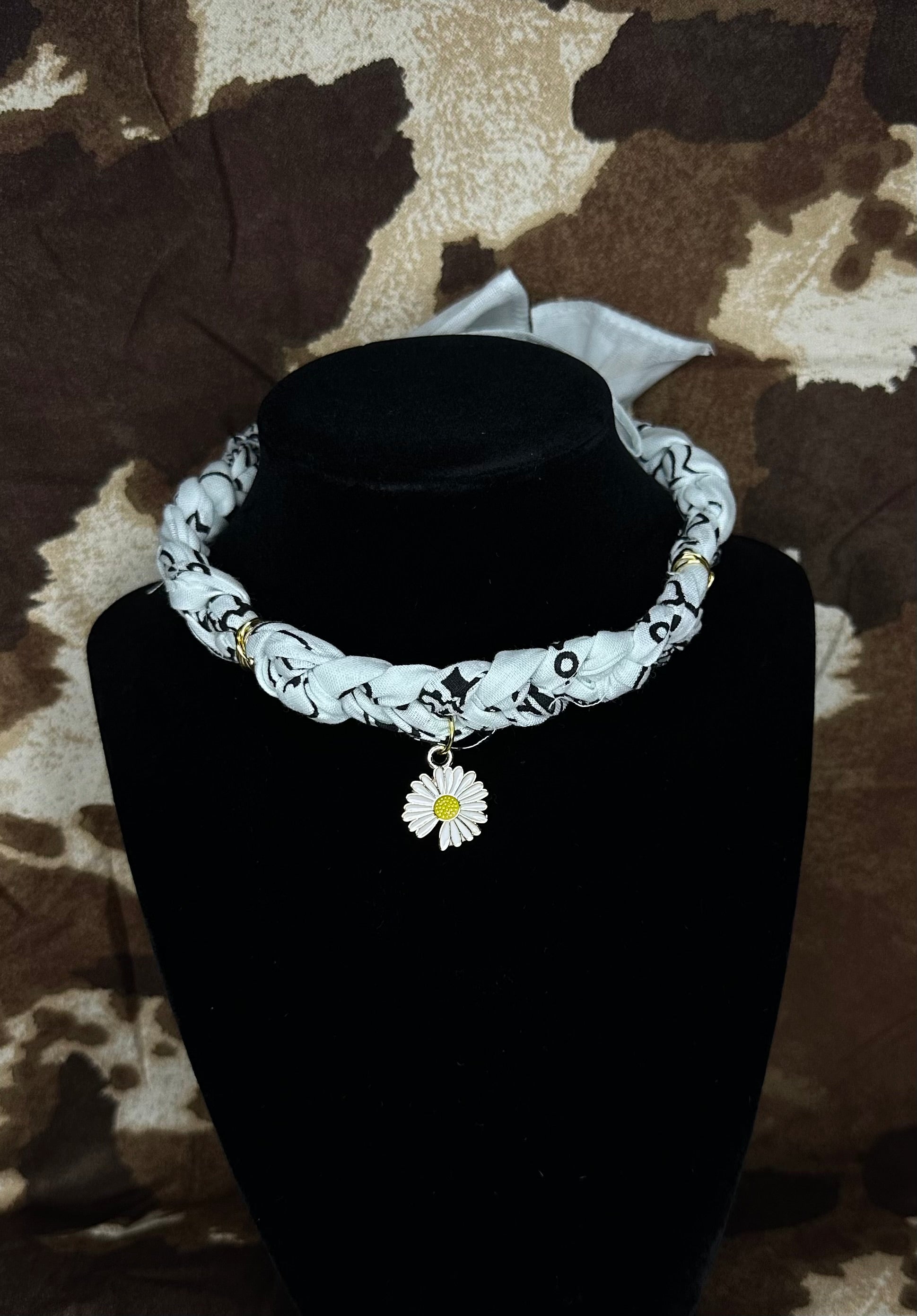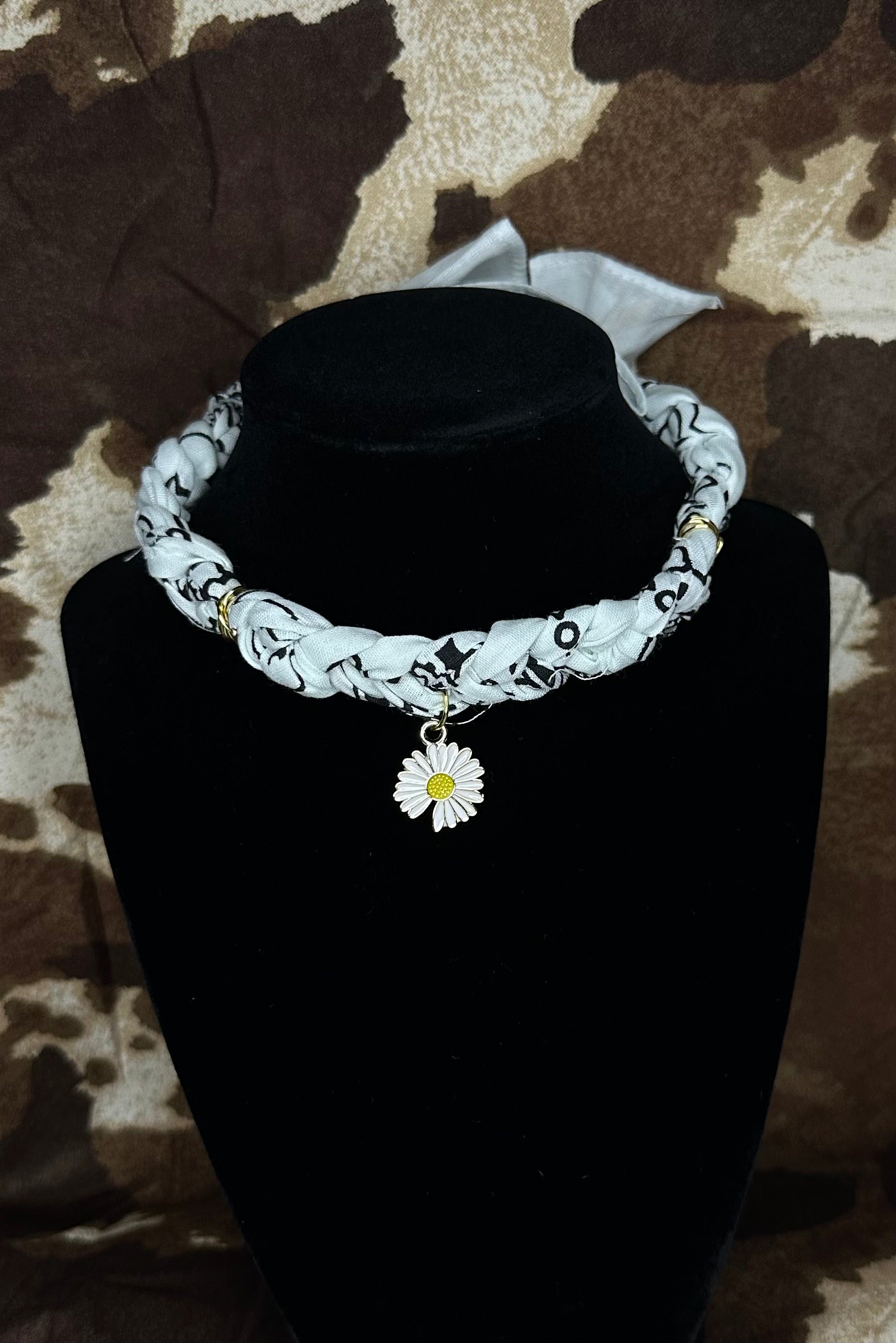 Say hello to sunshine and sweet southern vibes with the Daisy Duke choker – the perfect mix of girly charm and wild west flair. Made with soft bandana-style fabric and finished with hand-wrapped gold wire cuffs, a delicate gold chain, and a secure lobster clasp, this piece is made to sit beautifully at choker length.
