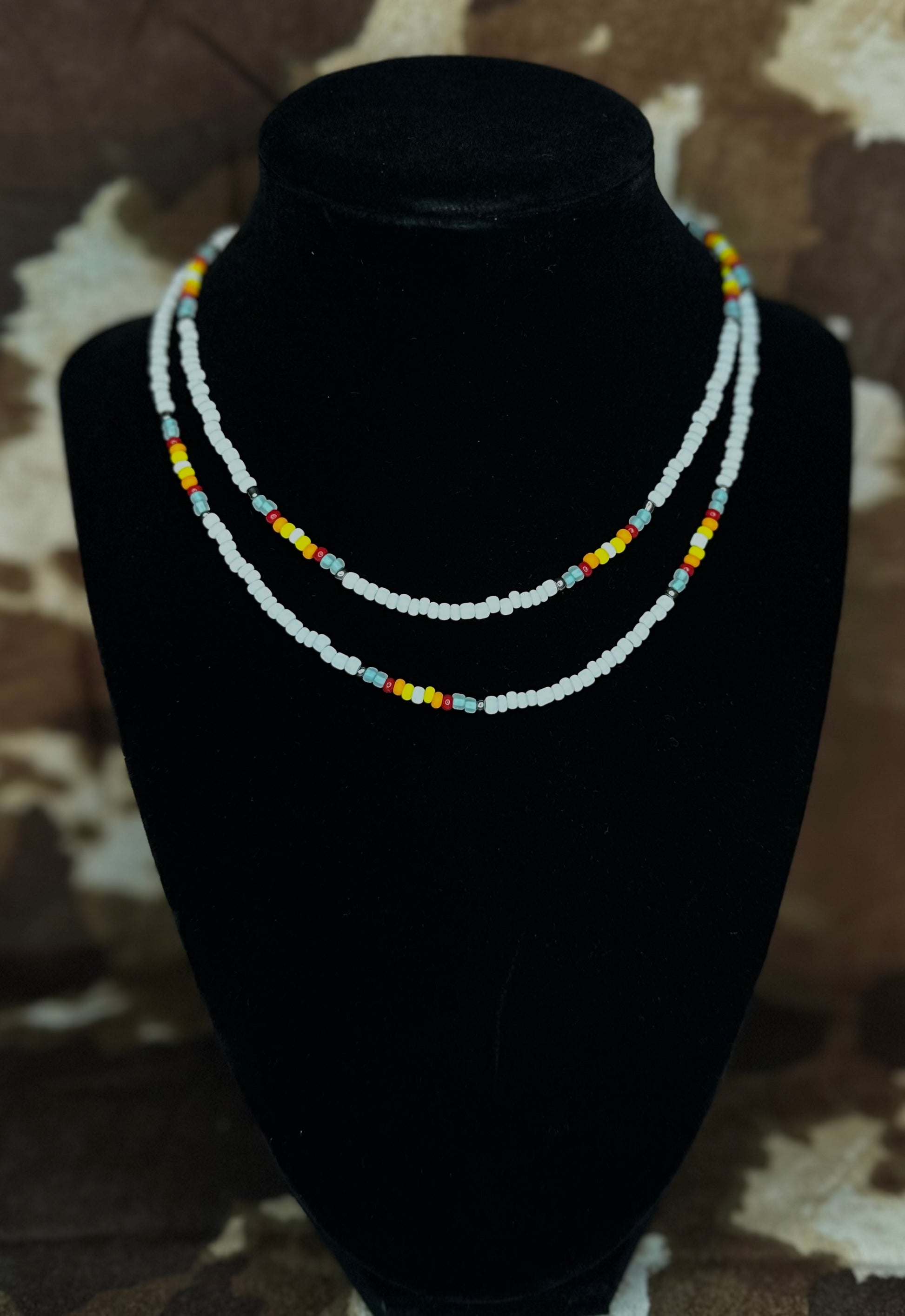 - Handmade seed bead choker with white base beads