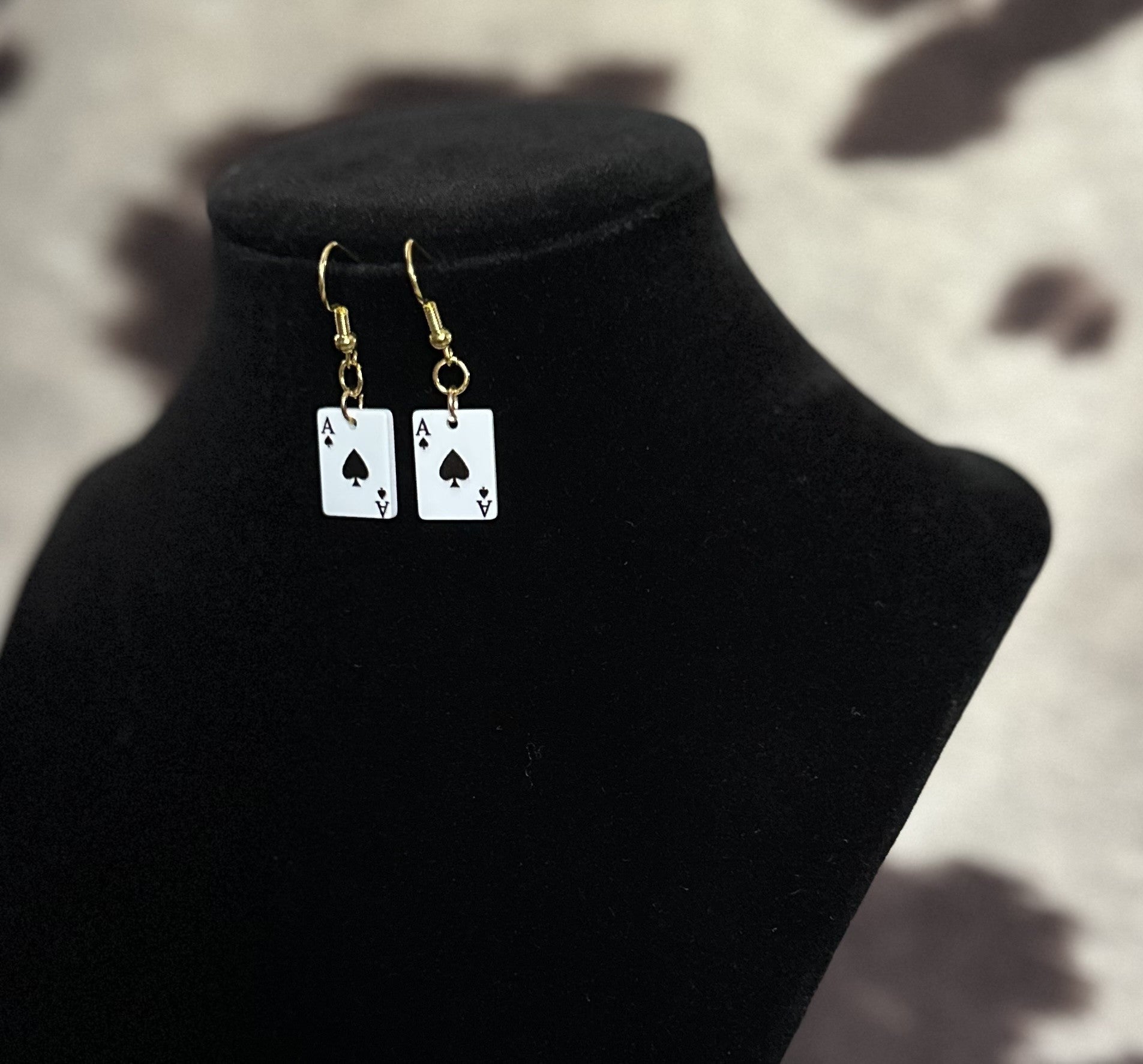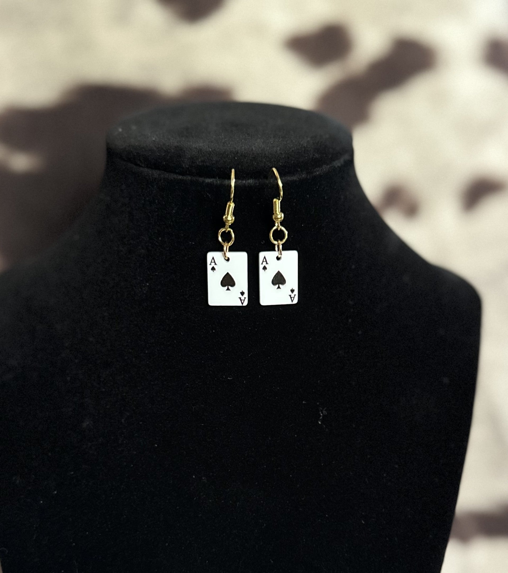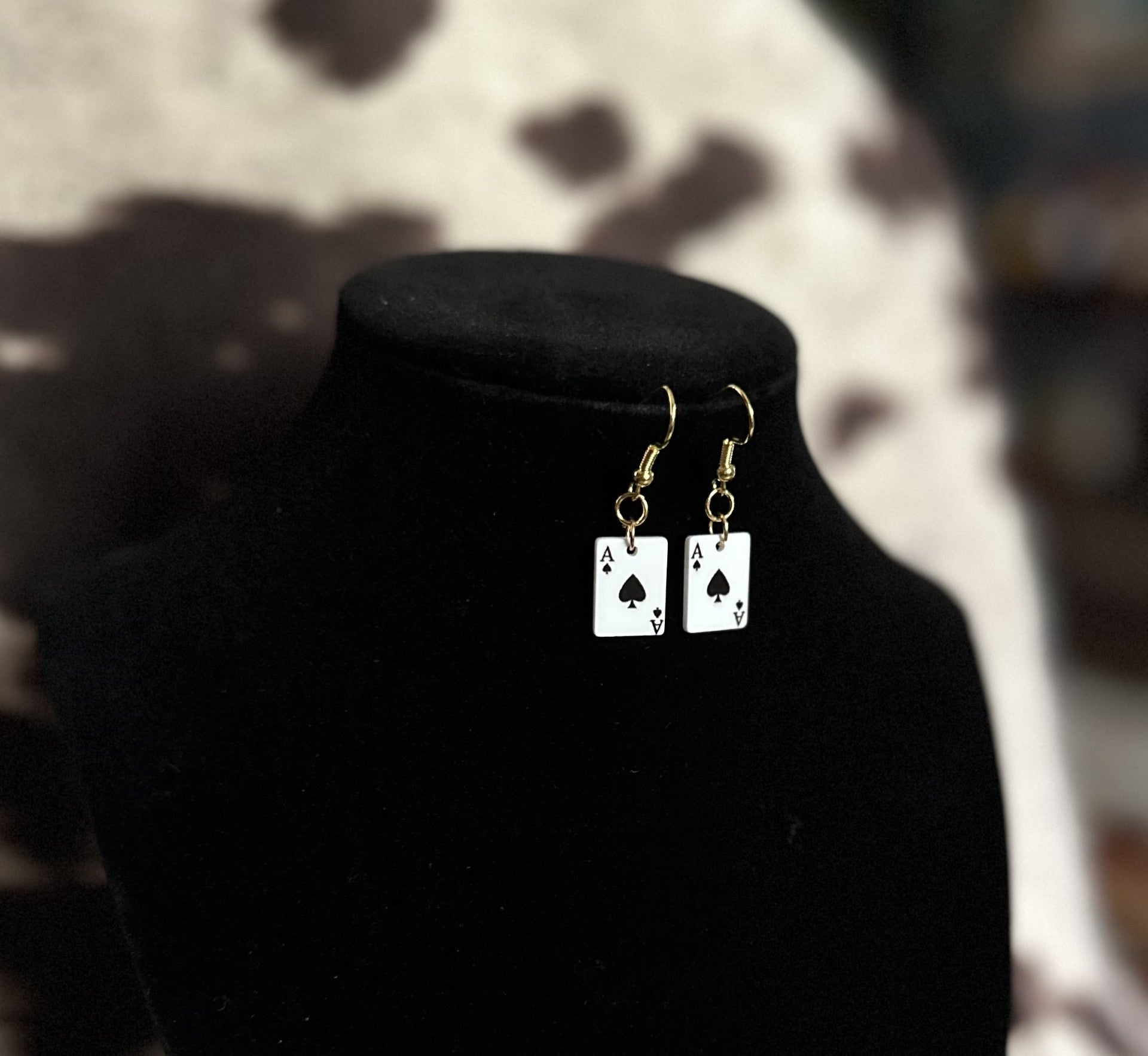 Take a gamble on style with our High Stakes Earrings, featuring bold ace of spades card charms! Handcrafted with a western edge and a touch of vintage flair, these earrings are perfect for the cowgirl who isn't afraid to bet big and stand out.