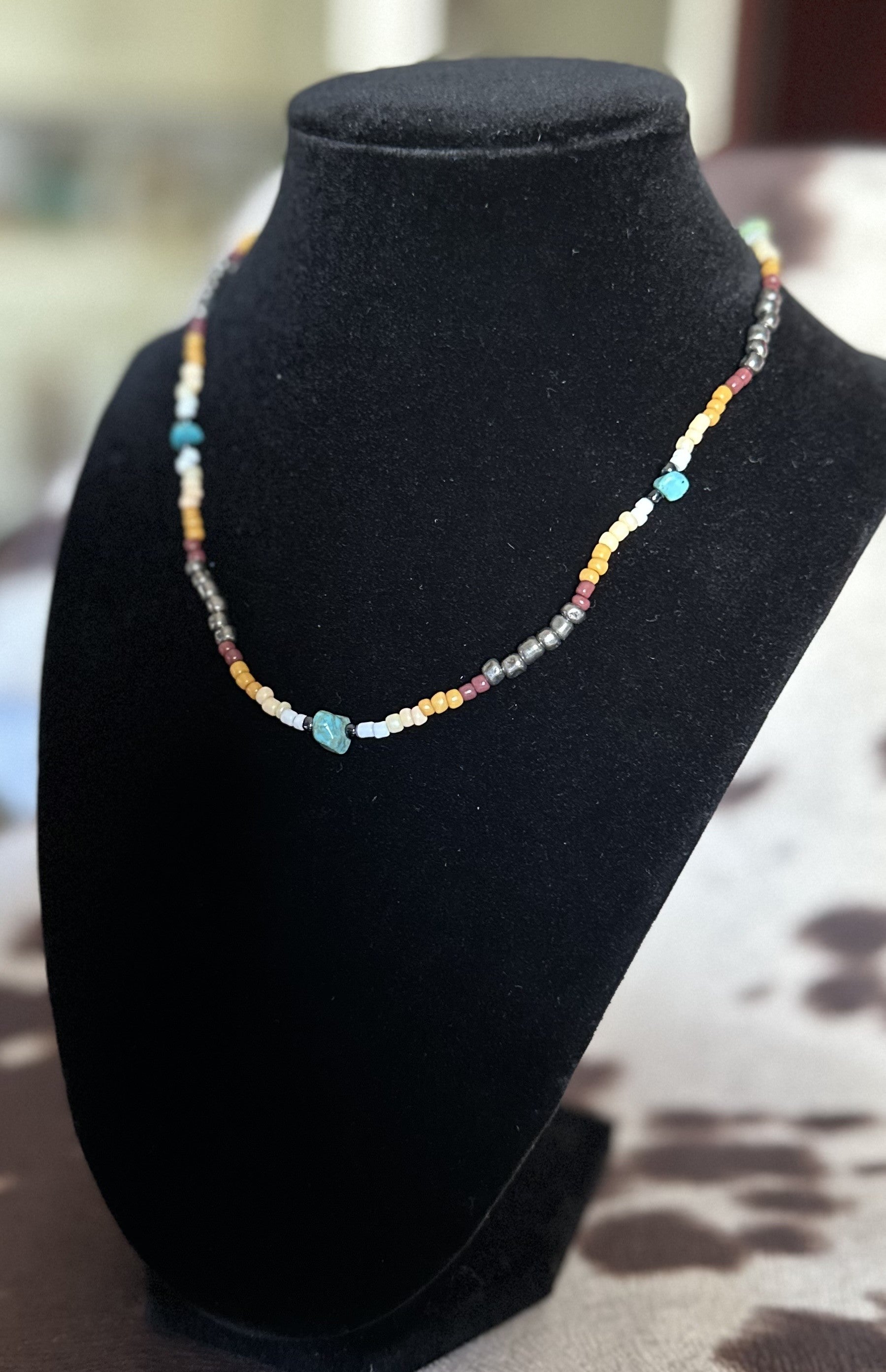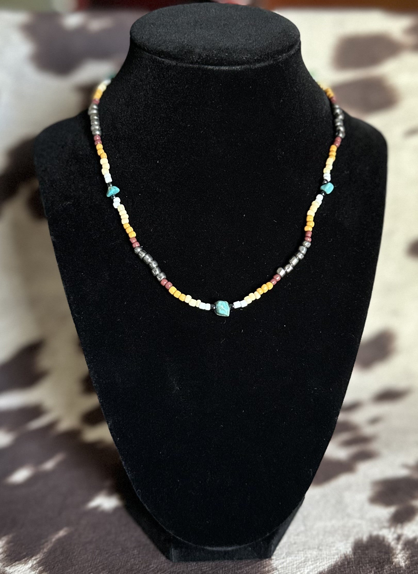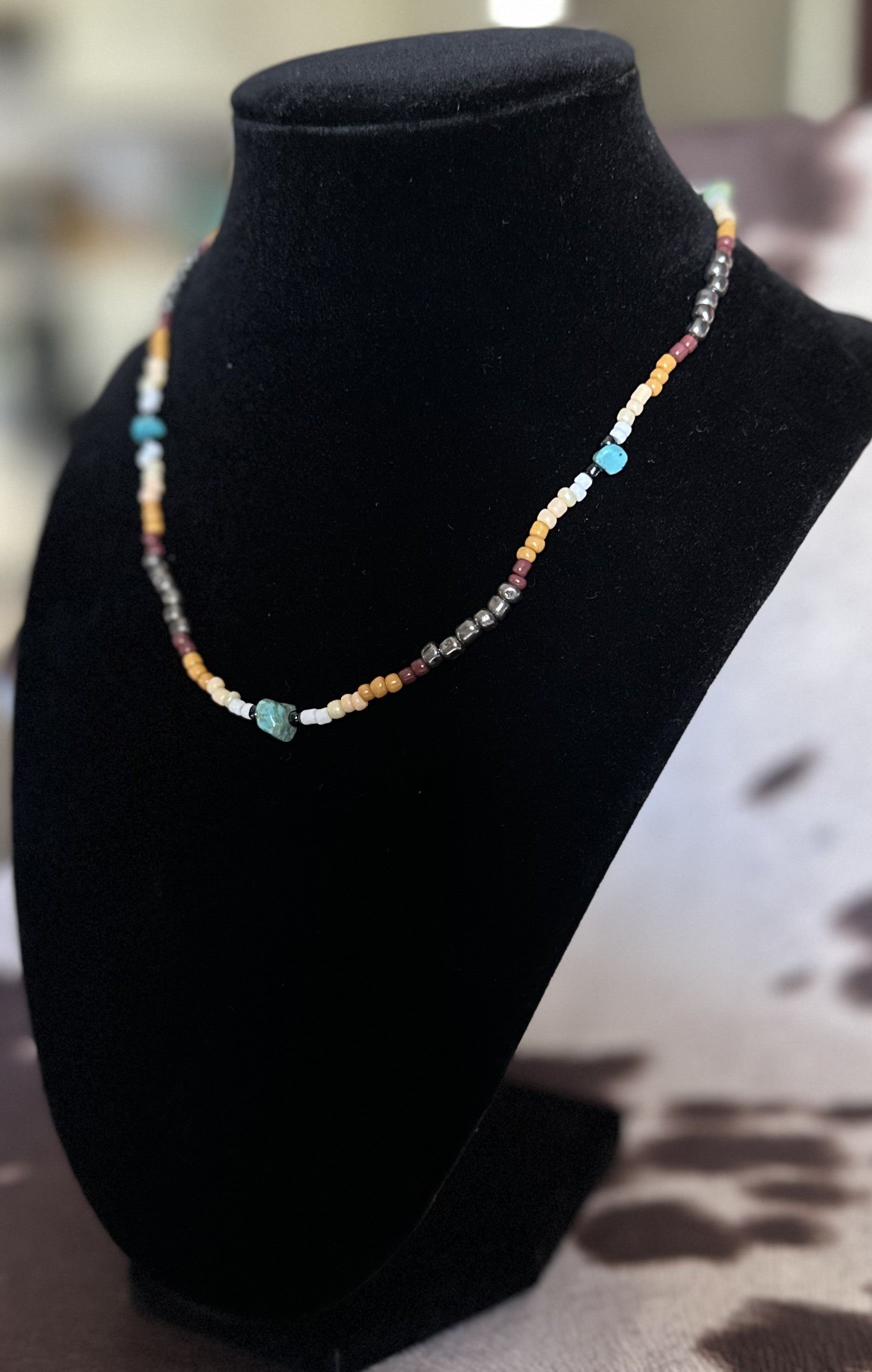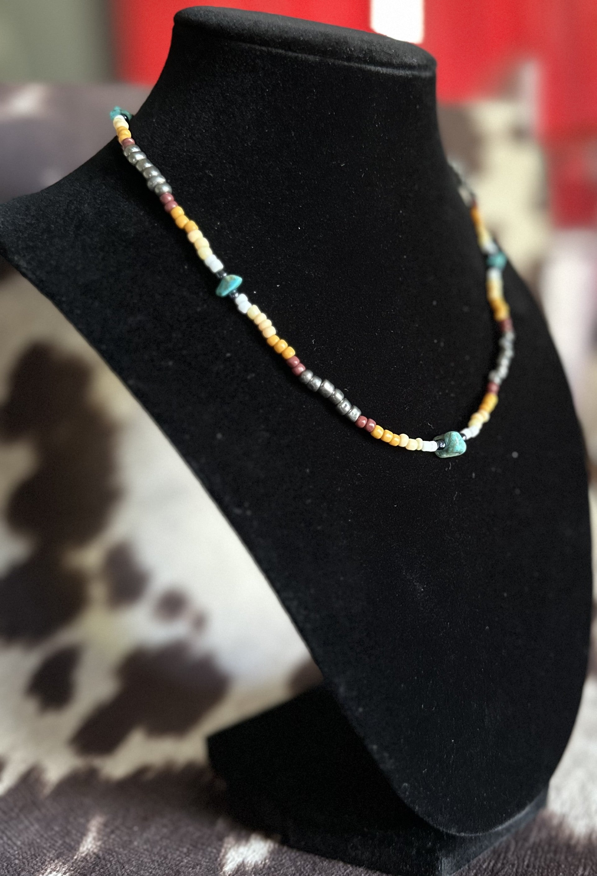 Hand-strung with natural beads in desert hues like burnt sienna, deep rust, and sand, this necklace is all about embracing nature’s textures and tones. Whether you're out on the trail or in town for the day, Moab is made to go wherever your boots take you.