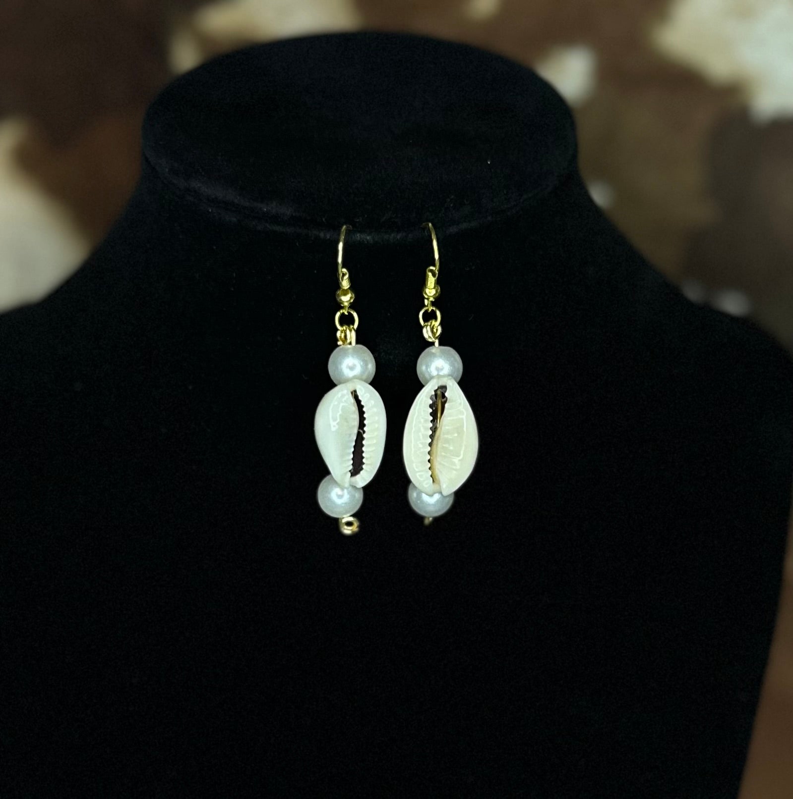 Elegance meets coastal charm. The Pearl & Tide Dangles feature genuine cowrie shells framed by lustrous pearl beads at both the top and bottom, creating a delicate balance of sea-inspired beauty and classic sophistication. Choose between gleaming gold or cool silver clasps to perfectly match your style.