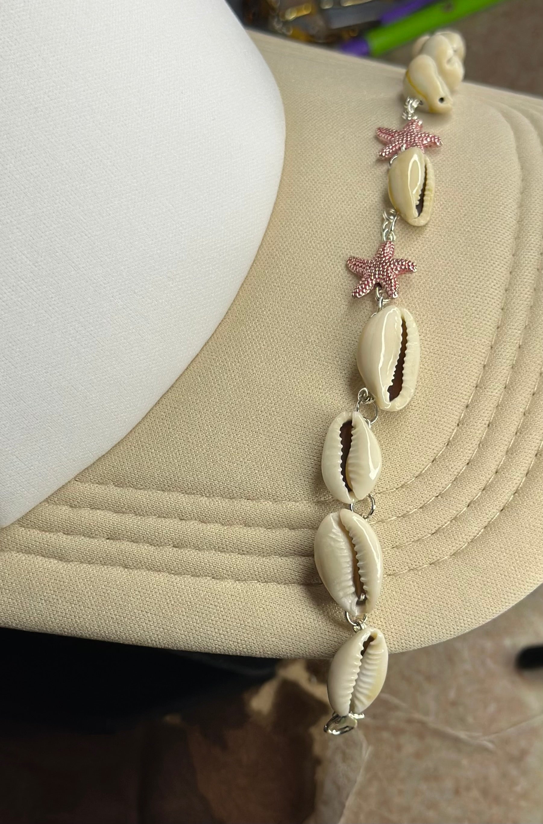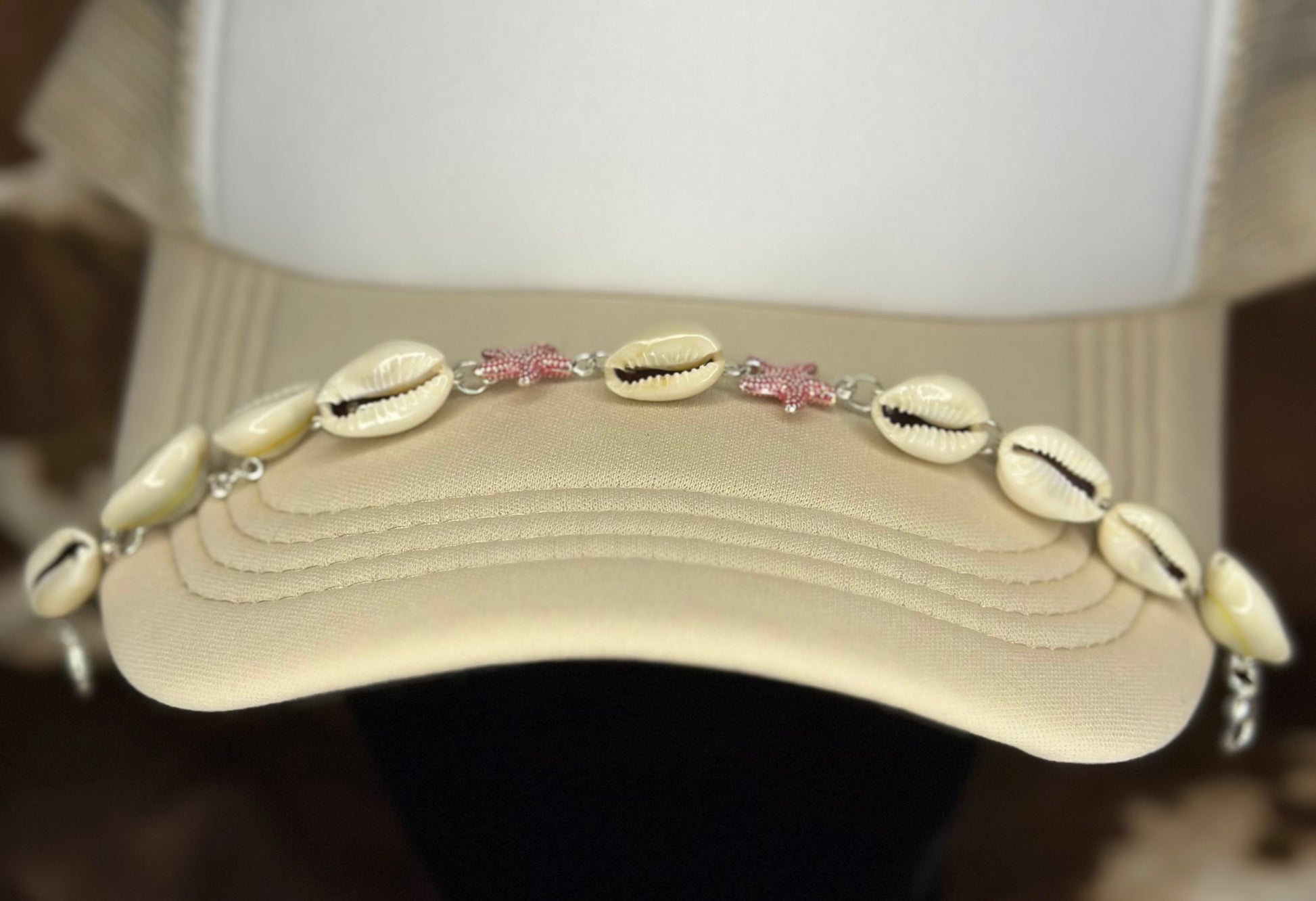 Designed with secure lobster clasps, this hat band stays firmly in place while adding a splash of coastal elegance to your look. Whether you’re strolling along the beach or bringing a touch of ocean vibes to your everyday style, Pink Tide Treasures is the perfect way to celebrate your love for the shore.