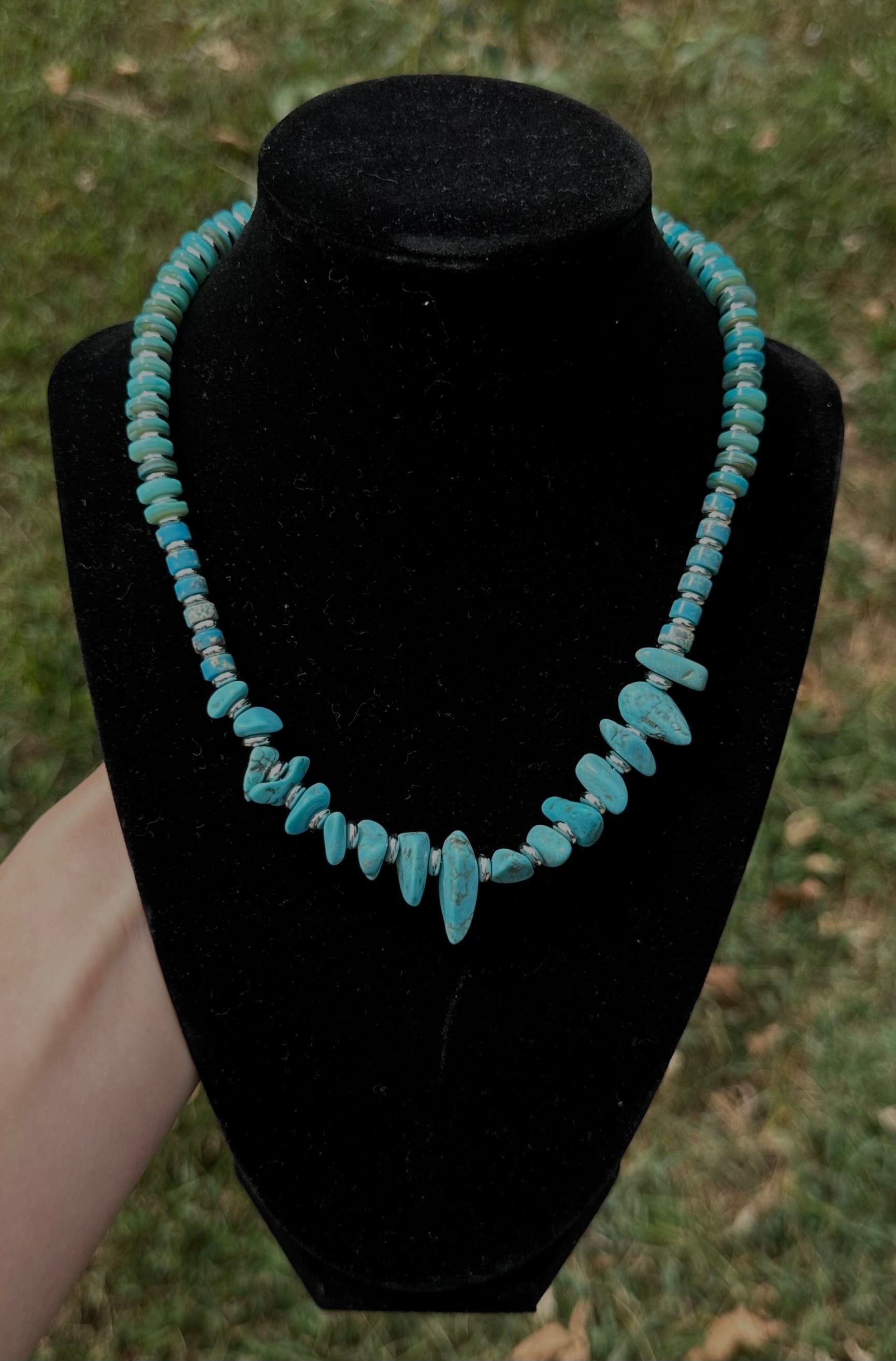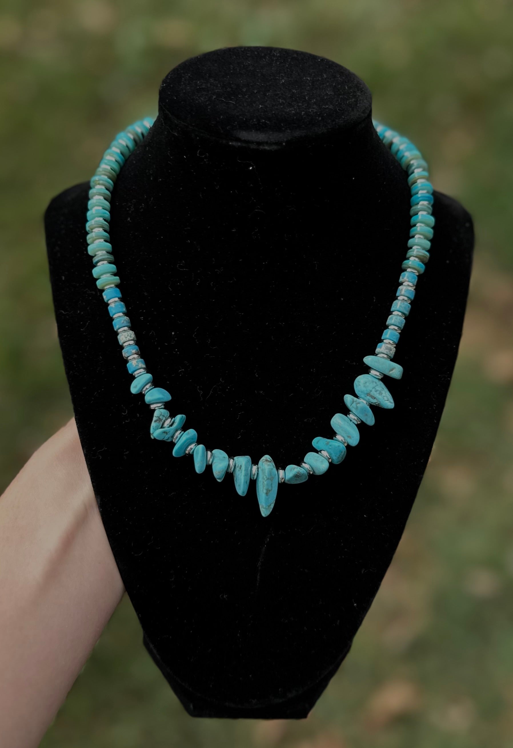 Turquoise has long been a stone of strength and protection, worn by cowboys and cowgirls alike as a symbol of resilience and spirit. Paired with its silver accents, this necklace carries a rugged elegance that transitions seamlessly from dusty trails to nights under the rodeo lights.