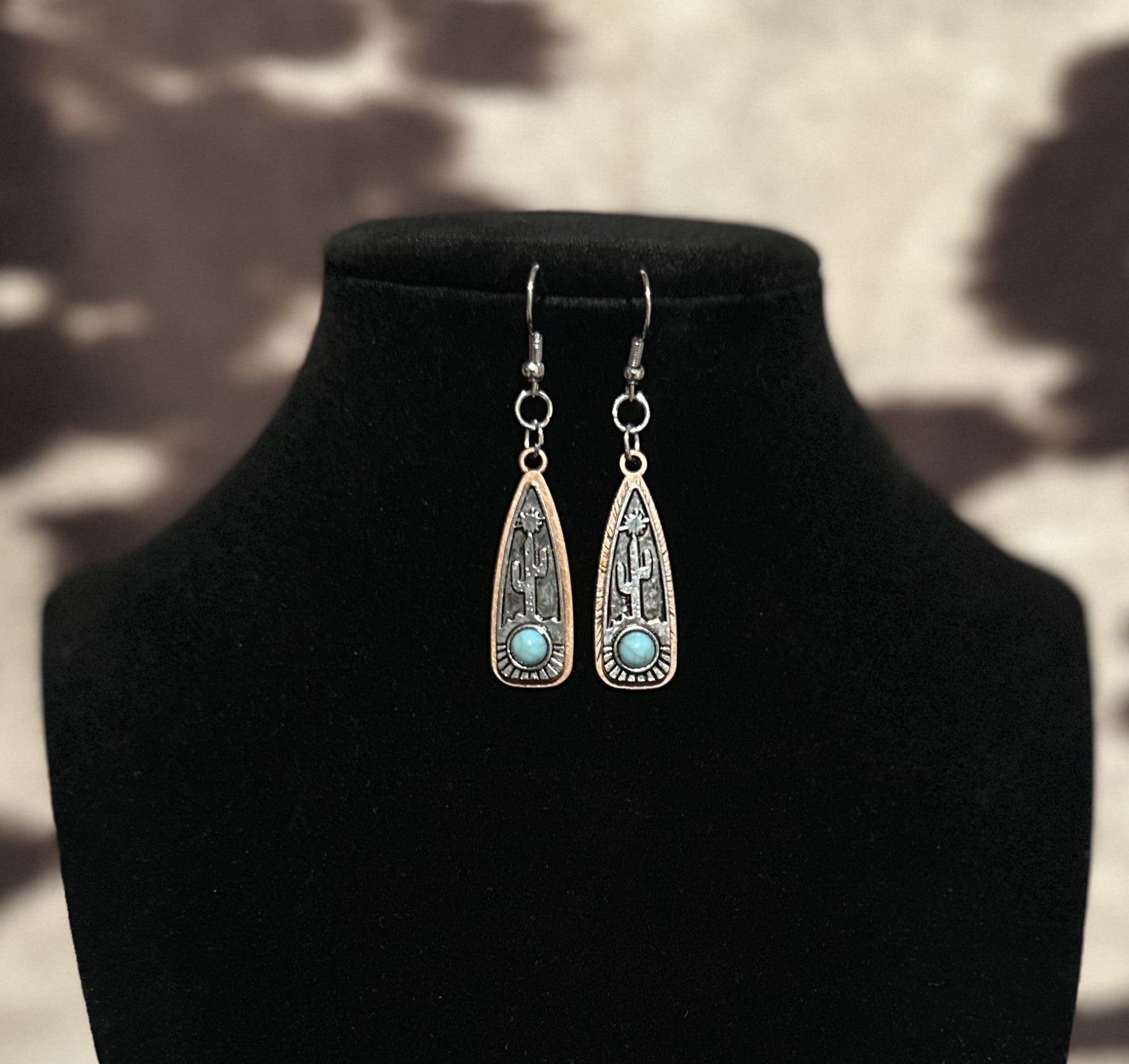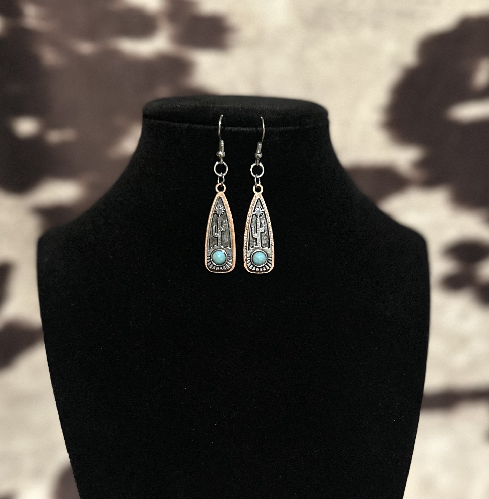 Earrings: Teardrop-shaped cactus design with matching turquoise accents