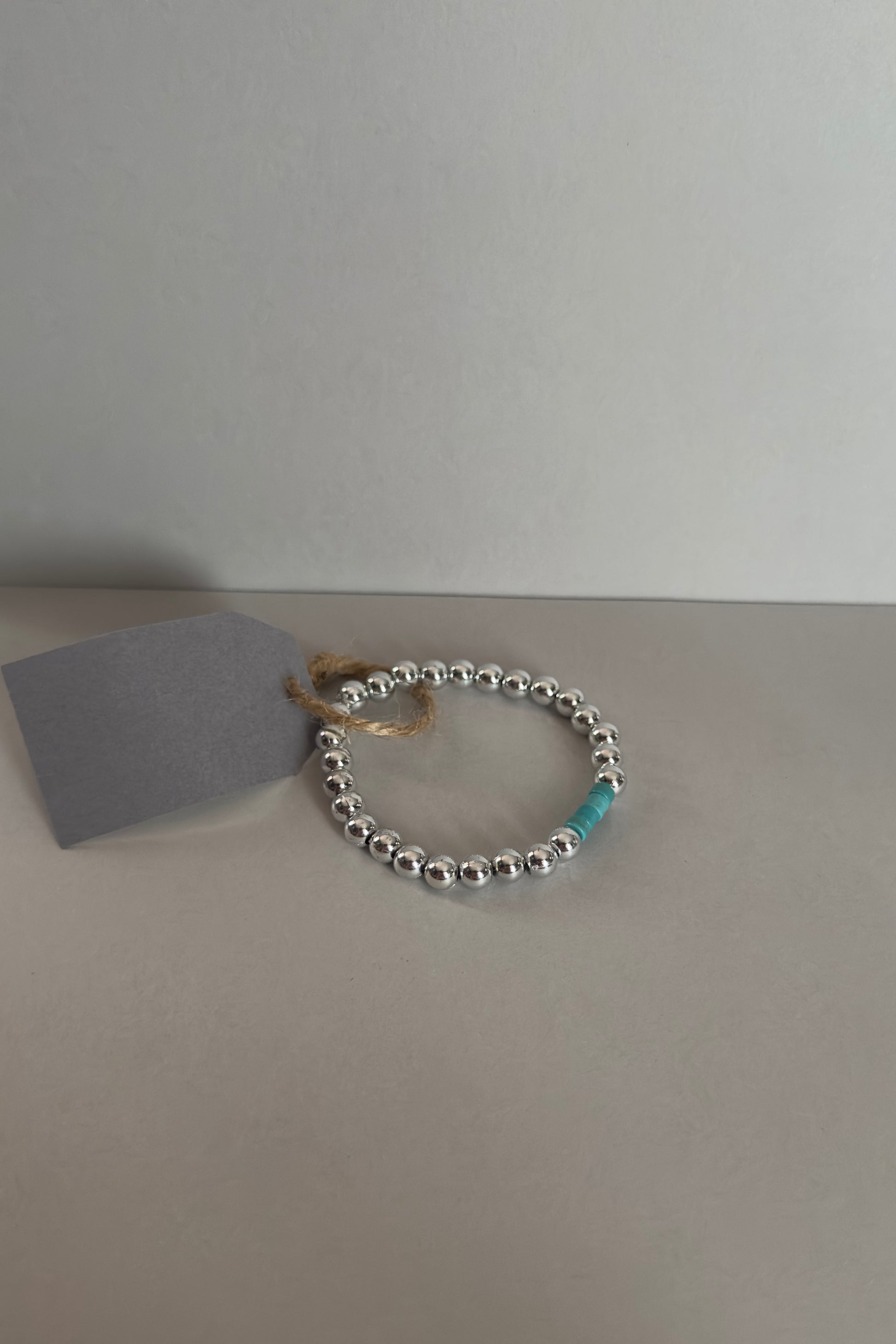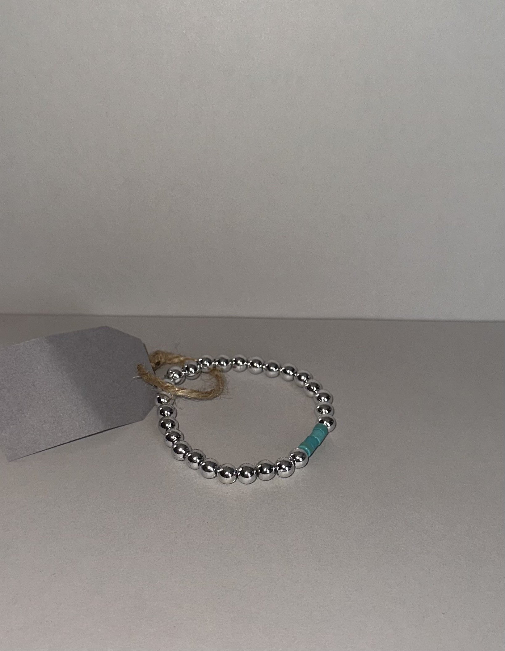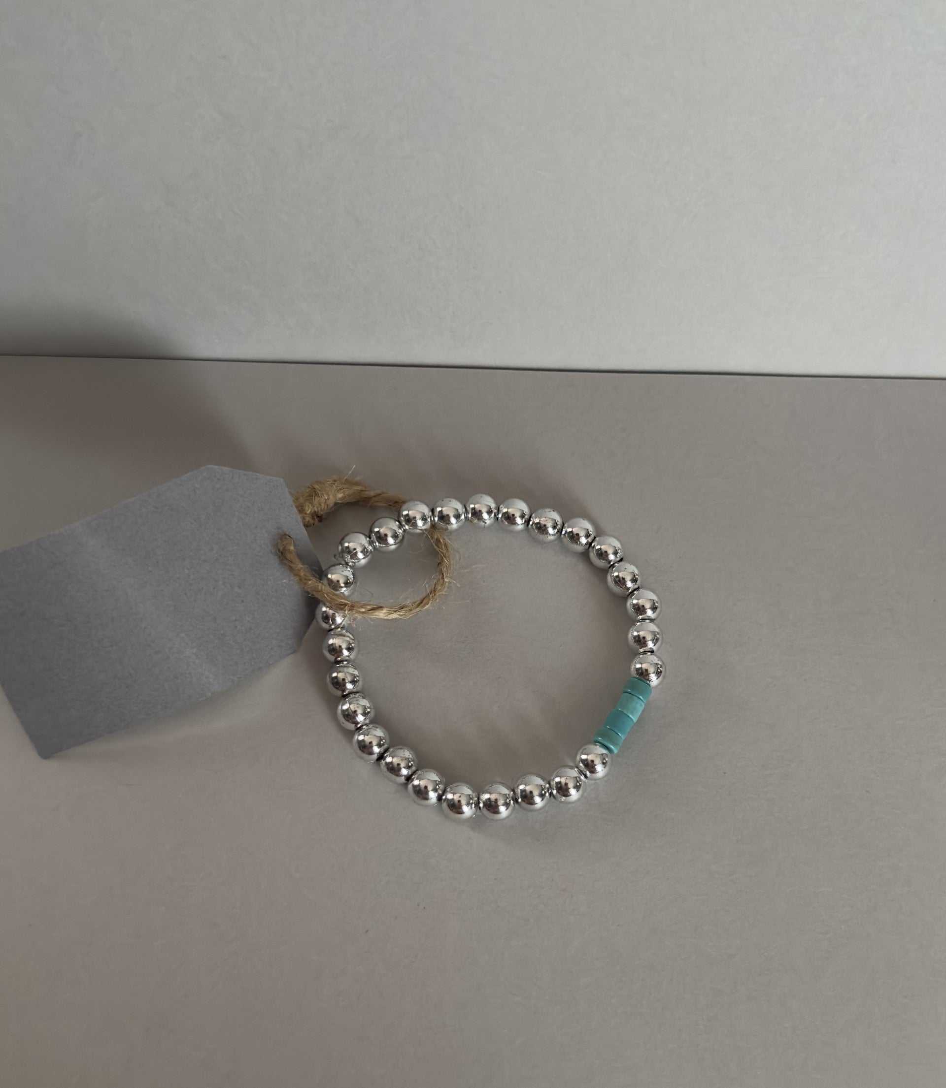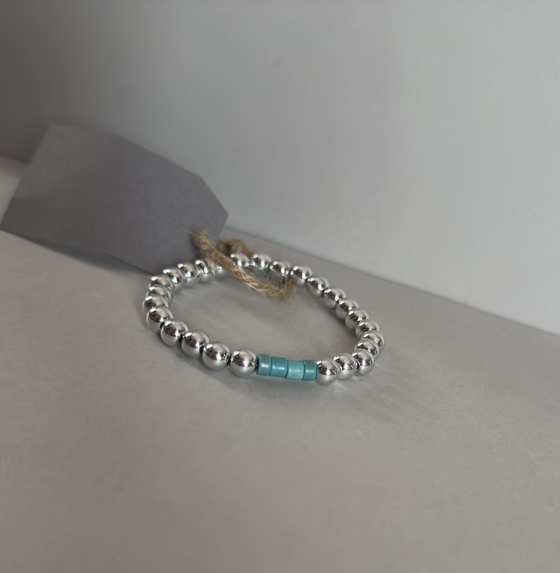 Handmade | Sleek & Elegant | Silver & Turquoise Beaded Bracelet