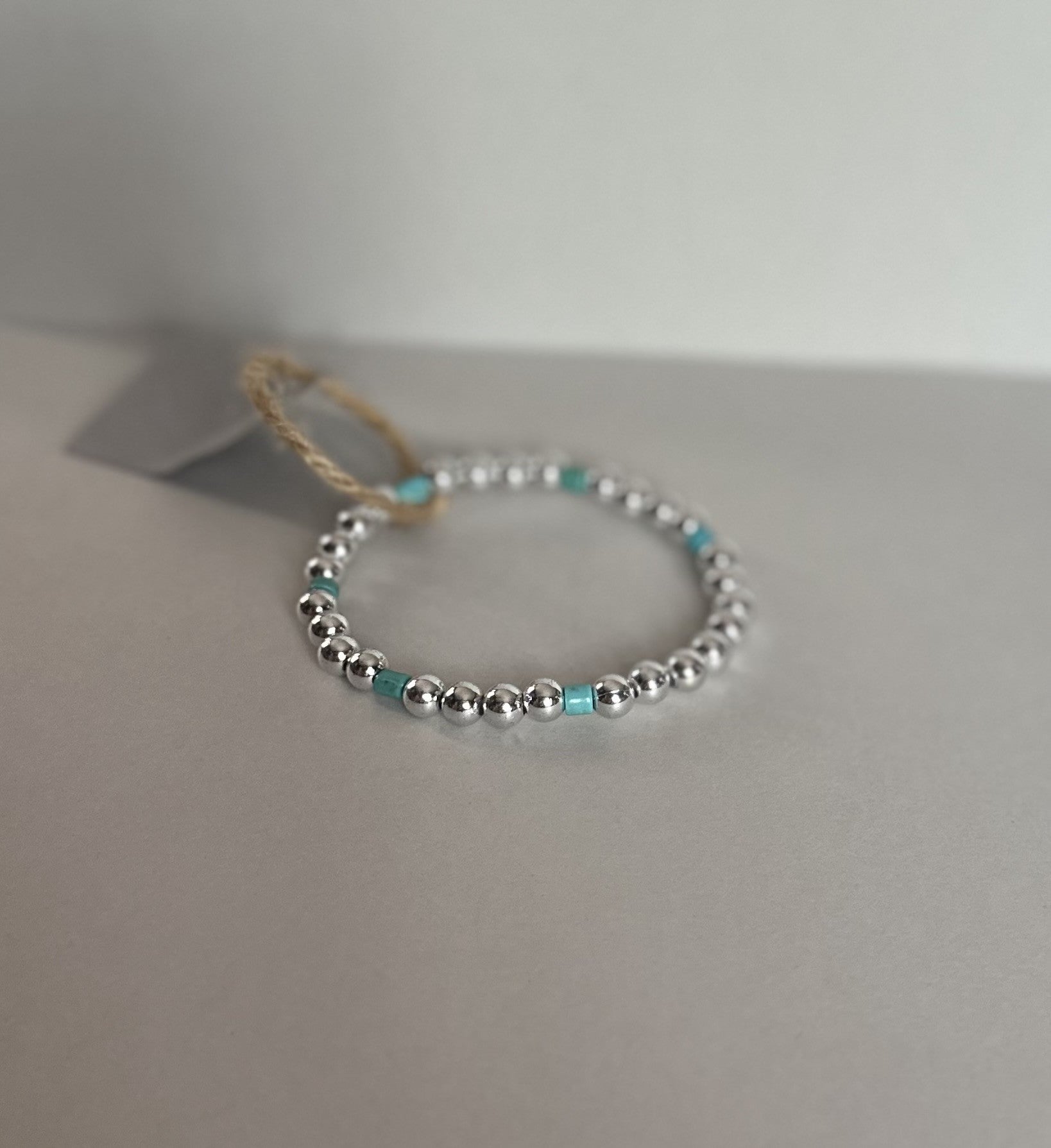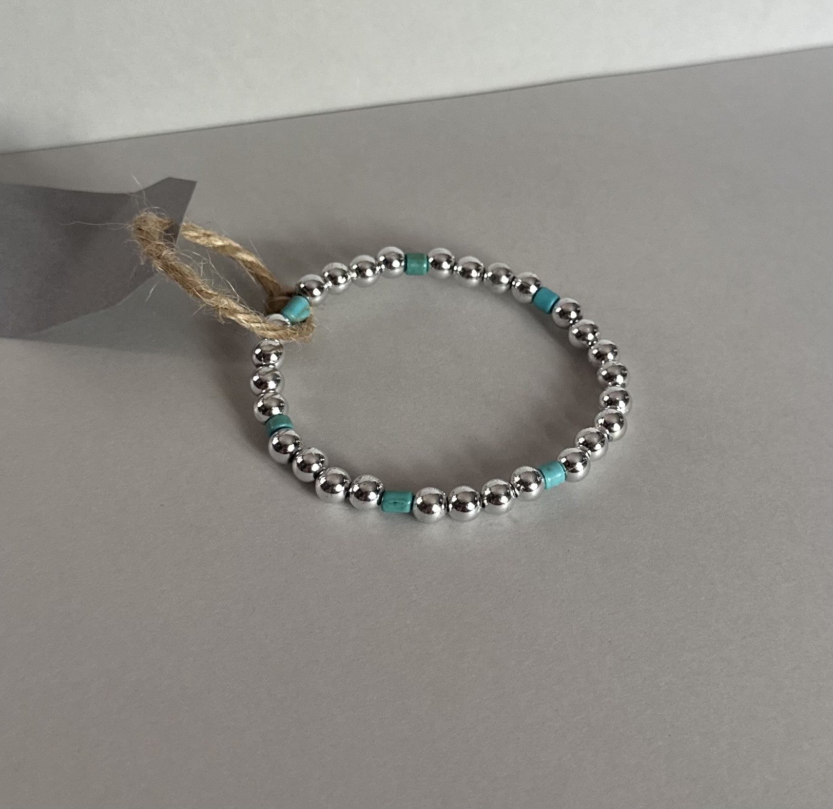 Silver-toned beads with turquoise bead accents
