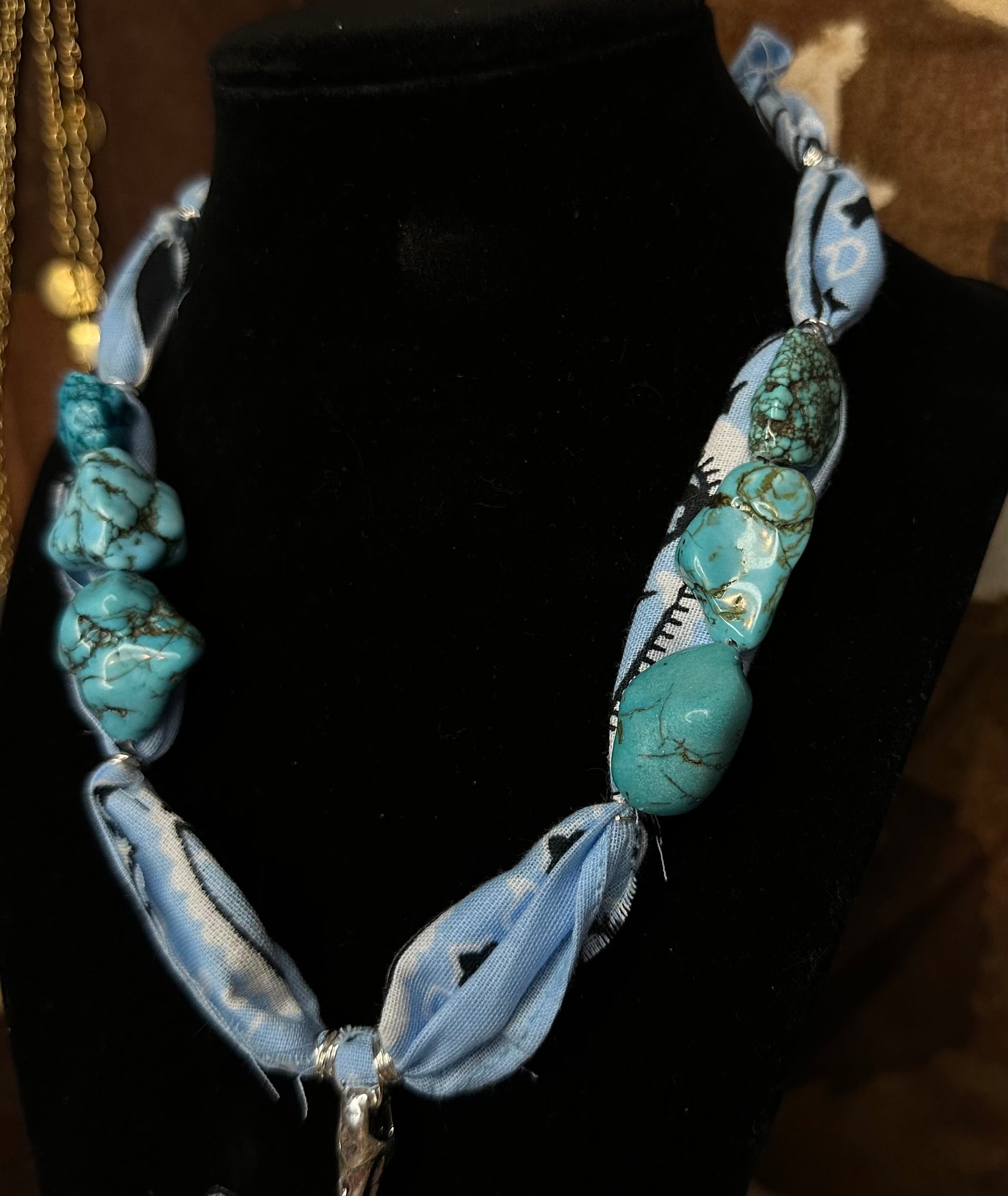 • Hand-wrapped bandana-style necklace