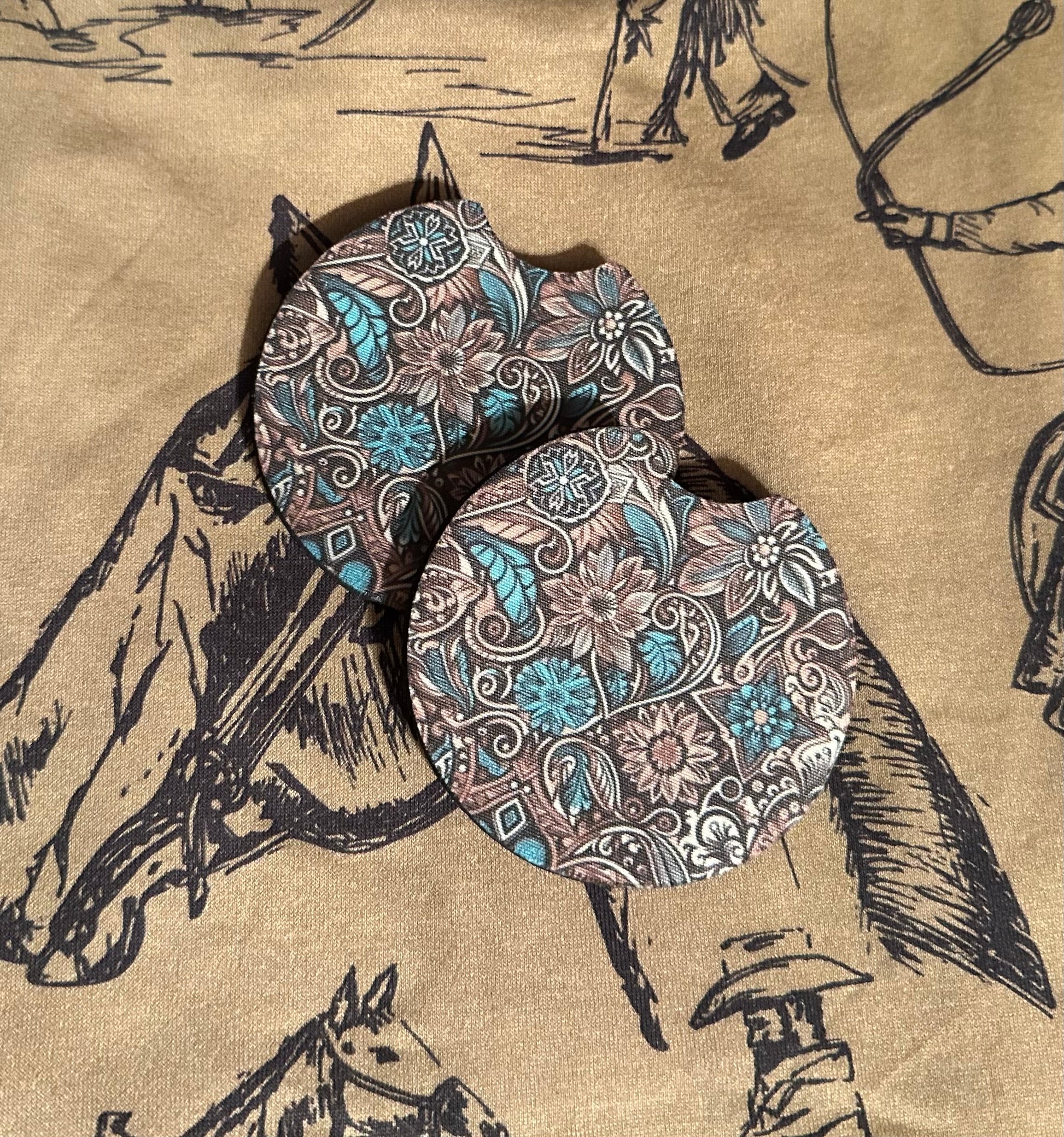 Add a touch of the Wild West to your ride with these hand-designed western car coasters! 🌵🤠 Each coaster is sublimated with care, bringing bold western patterns, rustic charm, and durable style straight to your cupholders.