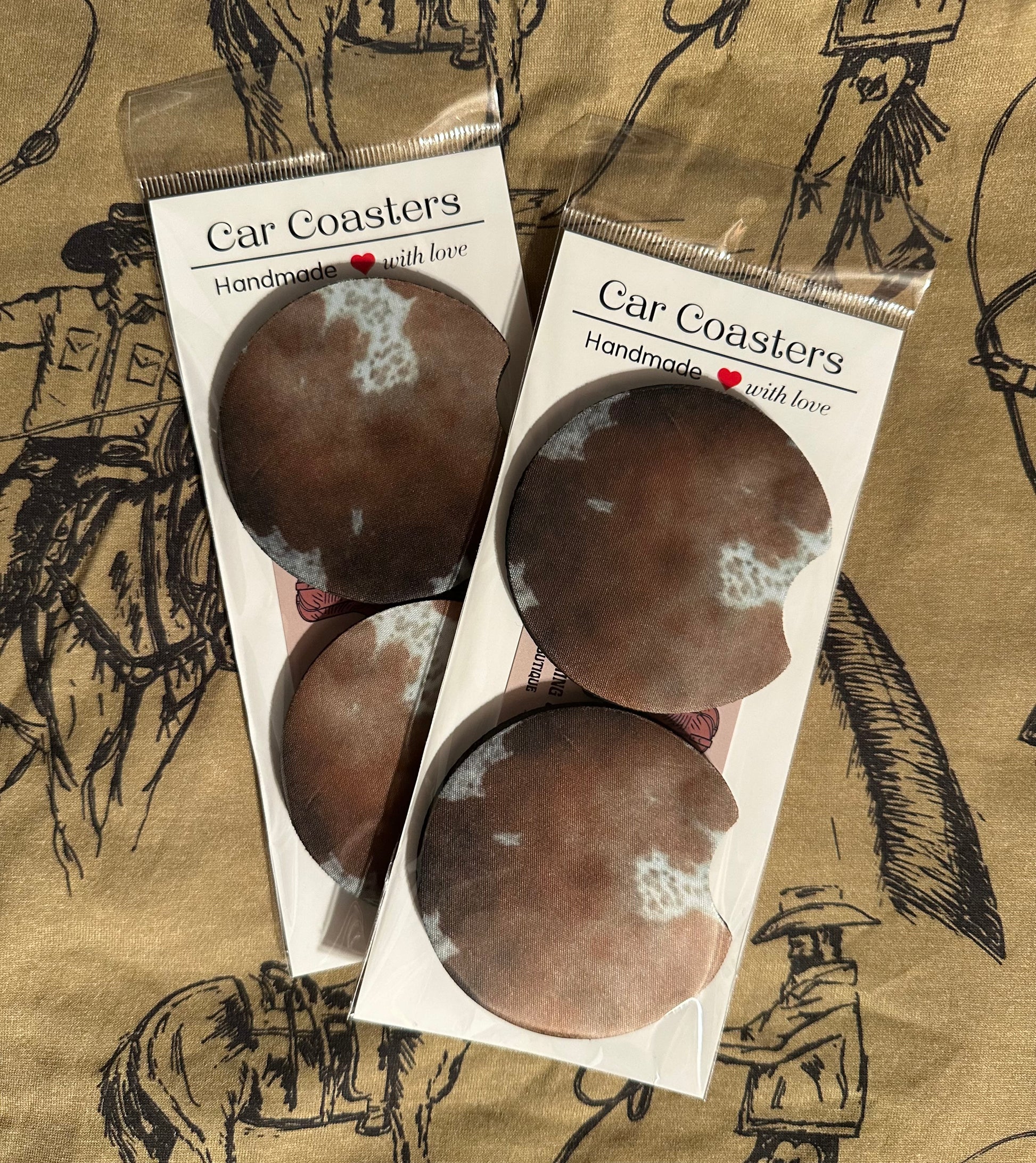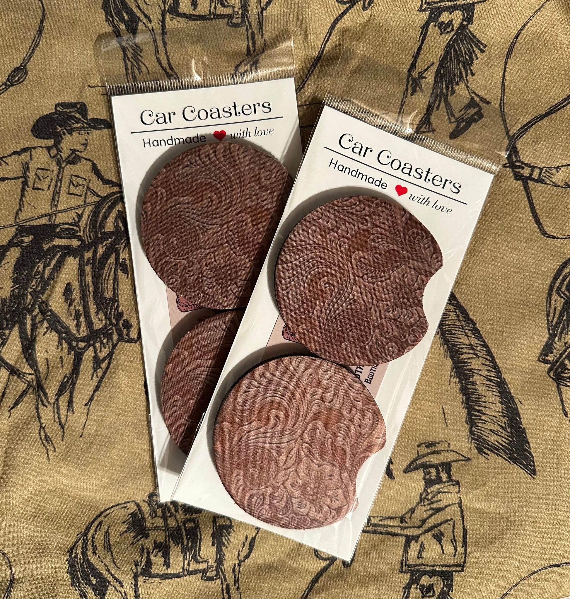 Whether you’re cruising to the rodeo, running errands, or heading out on a road trip, these coasters keep your cupholders clean while showing off your love for western style. They also make a perfect gift for cowgirls, cowboys, and western-loving friends!